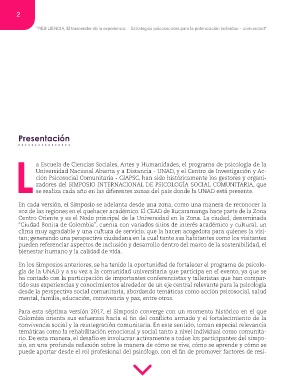En los Simposios anteriores, se ha tenido la oportunidad de fortalecer el programa de psicolo-