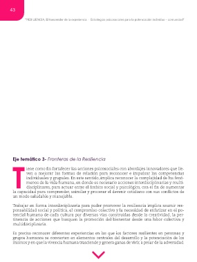 “RESILIENCIA, El trascender de la experiencia · Estrategias psicosociales para la potenciación individuo – comunidad”