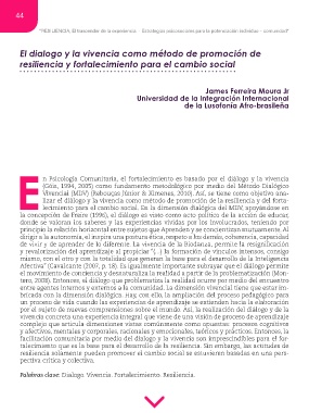 lizar el diálogo y la vivencia como método de promoción de la resiliencia y del forta-