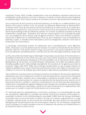 de resiliencia (Ximenes & Góis, 2010). Ética que, para Guzzo (2010), se pauta en el desvelamiento