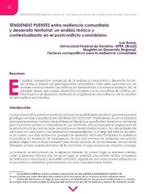 de resiliencia comunitaria y desarrollo territorial, seguida de una breve contextualización en