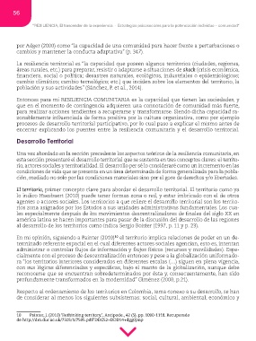 por Adger (2000) como “la capacidad de una comunidad para hacer frente a perturbaciones o