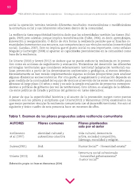 Tabla 1. Examen de los pilares propuestos sobre resiliencia comunitaria