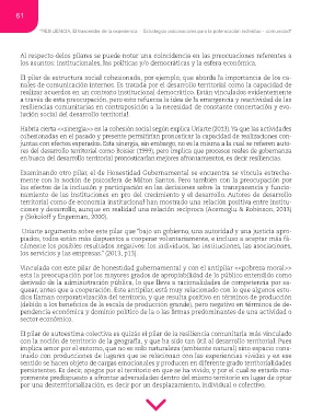 El pilar de estructura social cohesionada, por ejemplo, que aborda la importancia de los ca-