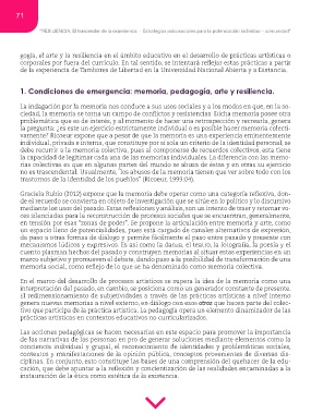 1. Condiciones de emergencia: memoria, pedagogía, arte y resiliencia.