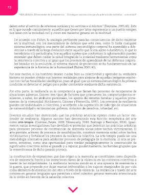 través de las subjetividades. La resiliencia termina siendo en sí una apuesta de resistencia a