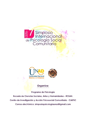 Organiza: Programa de Psicología Escuela de Ciencias Sociales, Artes y Humanidades - ECSAH. Centro de Investigación y Acción Psicosocial Comunitaria - CIAPSC Correo electrónico: simposiopsicologiaunad@gmail.com